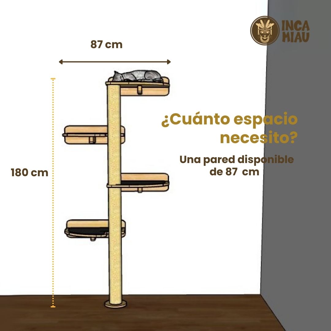Con nuestro Circuito Clarita podrás empezar a gatificar y adaptar tu hogar a las necesidades de tu gato. Con este mini circuito de Inca Miau, tu gato liberará su instinto explorador y juguetón, ¡mientras ahorras espacio en tu hogar!
