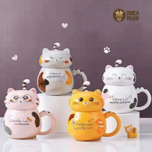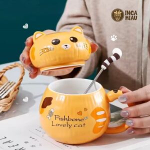 Linda taza con diseño de gato. Hecho de cerámica de alta calidad.No solo son funcionales, sino que también son una pieza decorativa que le da vida a tu cocina o escritorio. ¡Haz de cada café o té una celebración de tu amor por los gatos!Taza con tapa de cerámica y cucharita de acero.Capacidad: 350 ml